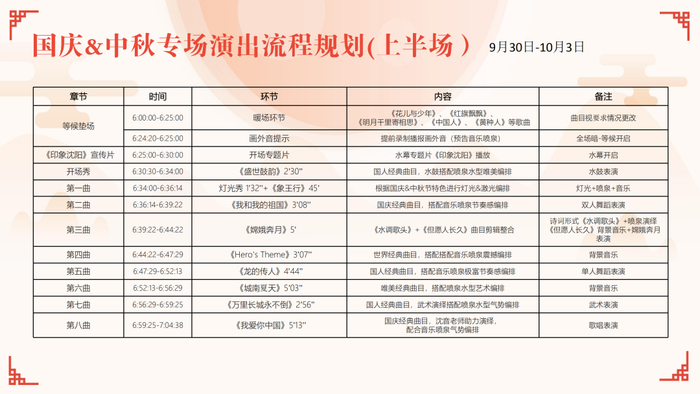 (一)舞台演出时间:国庆假日期间每天17:30开始,敬请期待。