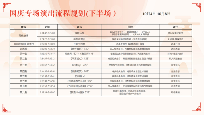 浑南中央公园音乐喷泉国庆&中秋双节专场时间安排