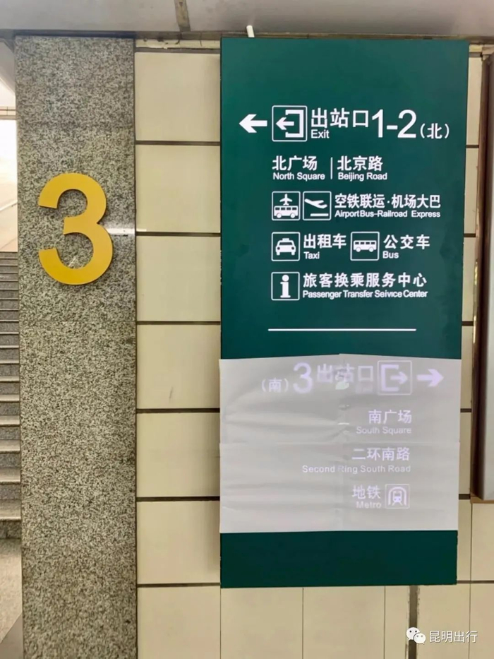由于昆明站南广场最宽处27米,最窄处6.3米,而且紧靠二环南路辅道和主干道,不具备机动车停靠条件。因此,此次开通进站功能,主要就是为地铁与铁路之间相互换乘客流服务,乘坐公交车、出租车建议走出站口1-2前往北广场;乘坐地铁1号线请走出站口3前往南广场。