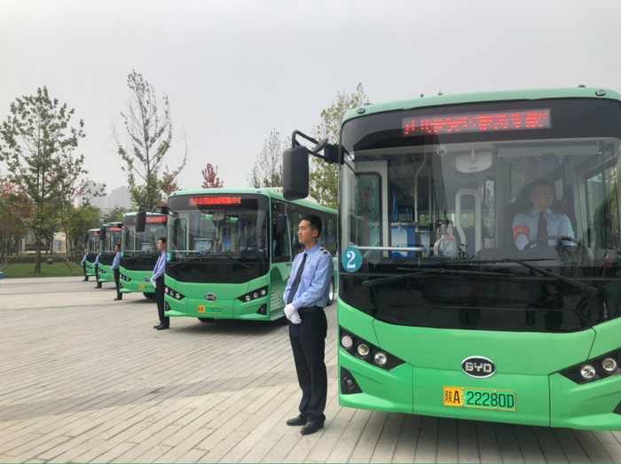 记者看到,旅游专线主打色为深绿色和浅绿相间,印着“千年古都,常来长安”,采用纯电动客车,司机们身着制服,佩戴口罩,站在车前整装待发。