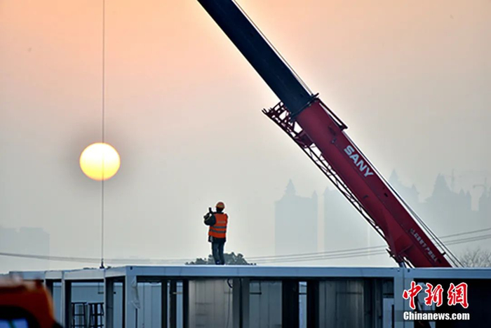 资料图:火神山施工现场 黄文瑞 摄