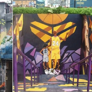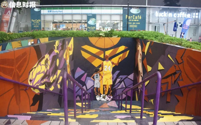 5月初,不少市民在新港东地铁口附近的一处阶梯墙上偶然发现了大幅的科比纪念画像。墙上画着科比和女儿的背影,就像科比刚转身,挥手和粉丝道别。深含寓意的巨型科比纪念画作此吸引了不少球迷前来打卡拍照。据知情人士透露,该幅画是Choi墙绘团队所制作,目的就是纪念一代传奇科比,给科比的粉丝们一些安慰。