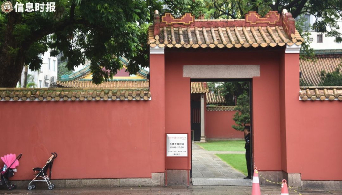 而农讲所最有特色的的是朱砂红的墙壁,古朴大气的建筑在蓝天和阳光的映衬下颇显别致素雅,许多游客慕名而来以庭院的红墙为背景进行拍照,更有不少人特地穿上汉服组团到此打卡。