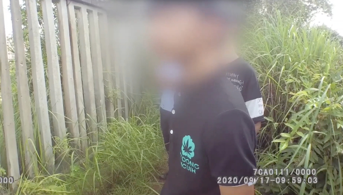 二人强行攀爬钦防铁路外侧山坡陡坡