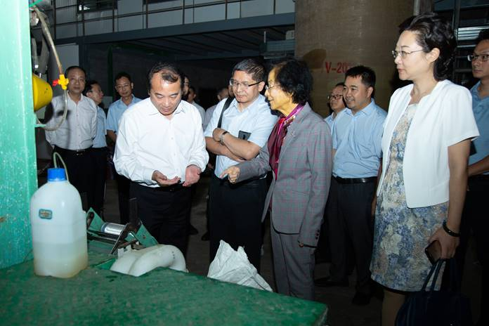 在考察中,张俐娜欣喜地看到,丝丽雅集团仅用两年时间就建立起小型工业化试验基地,从设备的设计和制造到工艺路线,从纤维素的溶解到脱泡和纺丝工艺等,全部属于自主创新。尤其是,该试验基地把纤维素溶液的浓度提高了一倍,纺丝液透明清亮,纺出亮丽夺目的柔软长丝。从投料到纺丝整个生产周期仅4小时,是目前世界上生产周期最短的再生纤维素生产工艺。这次工程化创新突破大大提升了丝丽雅集团的技术创新水平和国际竞争力。