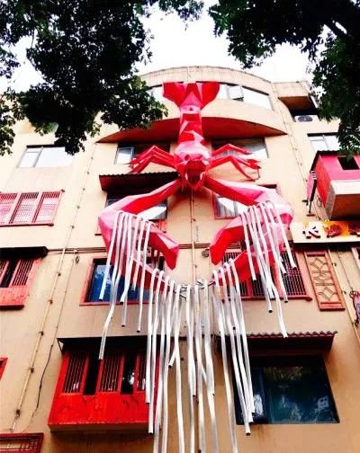 9月27日,记者在现场看到,该街的主造型已基本完成,远远望去,混合着复古与新潮,将多种元素进行文创再造的各种图案、造型尤为引人注意。