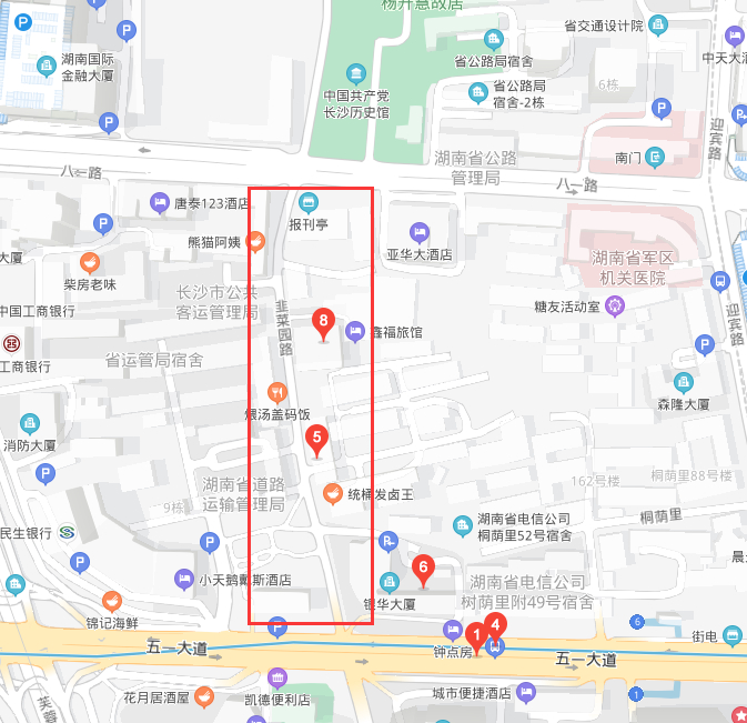 韭菜园“湖南米粉街”南接五一大道,北临八一路,街长约400米,沿街共有71个门店。