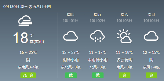 9月29日,市气象局发布我市国庆假期天气预报,预计节假日期间我市多阴雨天气,其中10月1日到2日有一次明显的降水降温过程,此外4日还有一次弱的降温天气。(记者王海鹏 实习生杨田)详情:降温又吹风!“十一”期间天气大剧透