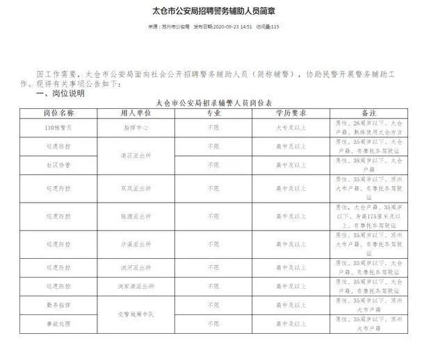 招聘辅警只限男性被指性别歧视 江苏太仓:女辅警已招满
