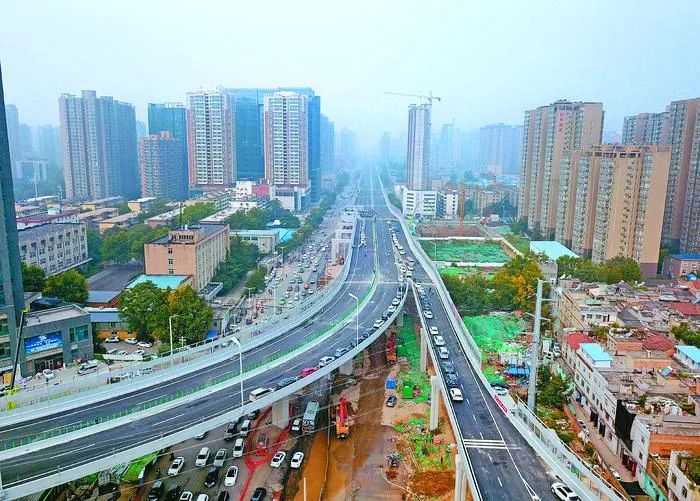 丨昆明路高架桥和西南二环立交相连,是西南二环到西三环的快速通道。记者 谢伟 摄丨
