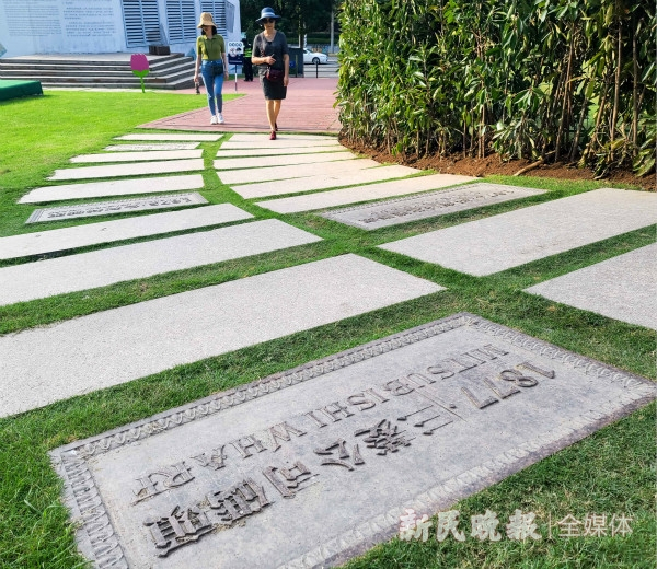 图说:露天博物馆内的石阶年轮展示北外滩码头变迁 新民晚报记者 陈梦泽/摄(下同)