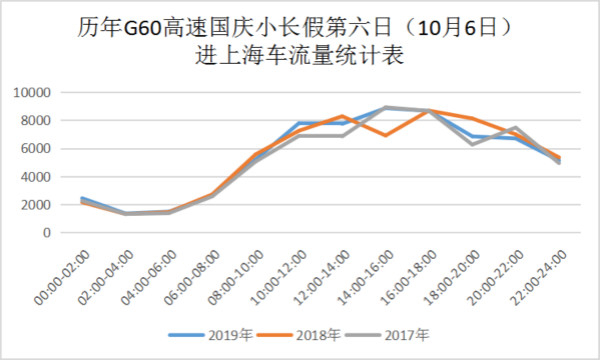 图说:历年G60高速国庆假期第六日进上海车流量统计表