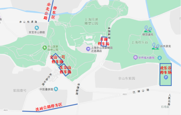 驾车前往上海佘山国家森林公园的市民,可将车辆停放至东佘山停车场、佘山一号停车场;驾车前往上海欢乐谷,可将车辆停放至欢乐谷停车场;驾车前往上海月湖雕塑公园,可将车辆停放至月湖停车场。