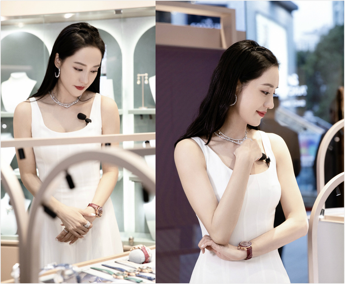 在此次直播中,王智不仅为大家介绍了经典蓝色重新演绎长青款式的125周年纪念系列,作为秋季星推官的她,也亲自佩戴了另一经典系列Tennis。该系列不仅揉合亮泽的表面以及华丽的雪白和粉灰色饰石,还推出了三角形、公主式、圆形、椭圆形和梨形的不同切割方式,令佩戴更加纯美无暇,光彩夺目。