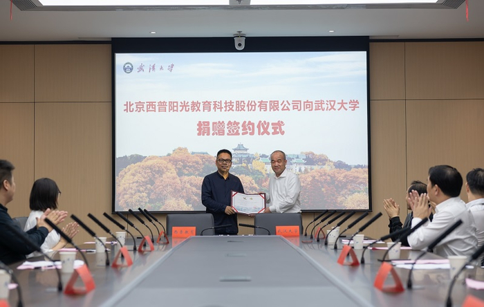 捐赠仪式上,武汉大学教育发展基金会副理事长兼秘书长邓小梅与王建签署捐赠协议,国家网络安全学院常务副院长赵波与西普教育签署了战略合作备忘录。窦贤康为王建颁发了捐赠证书。