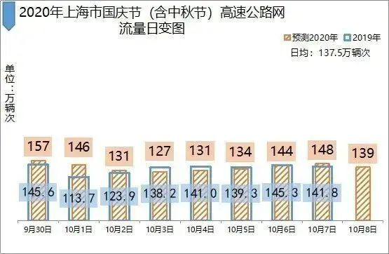 预计国庆节期间(8天)长三角区域高速公路网车流规模达7771万辆次,日均流量971万辆次,同比2019年(937万辆次)上升3.7个百分点。