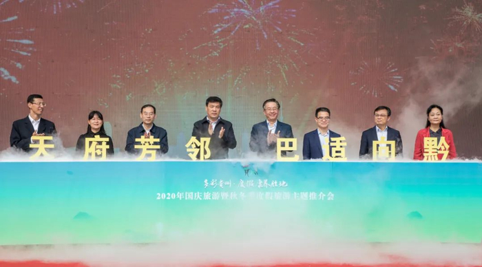 活动现场,贵州就2020年国庆旅游暨秋冬季度假旅游主题向四川游客展开推介,邀请包括四川在内的全国游客在9月29日至12月31日,到贵州旅游享受全省A级景区门票5折优惠。