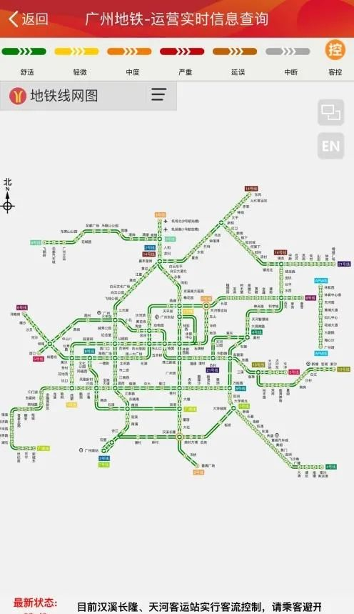 今天上午9:40,广州地铁全线网有2个车站开始进入了限流状态:汉溪长隆、天河客运站。其中,汉溪长隆为紧邻旅游景点的车站,天河客运站连接对外交通枢纽。