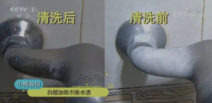 揭开纸巾,然后再用纸巾把水龙头擦拭一遍,原本黯然失色的水龙头又恢复闪亮了,像新买的一样!