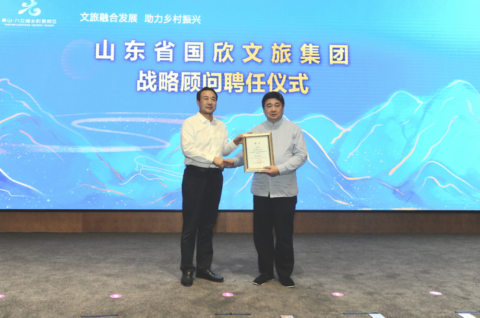 单霁翔受邀担任省国欣文旅集团战略顾问,省商业集团党委书记、董事长兼省国欣文旅集团党委书记、董事长高洪雷为他颁发了聘书