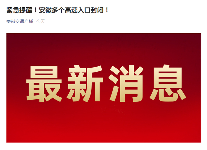 安徽多个高速入口已封闭