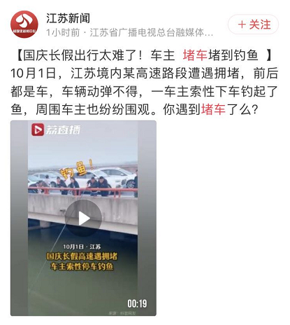 今天,听说有人高速堵车堵到钓鱼……