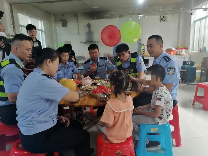 兄妹俩与民警辅警吃“团圆饭”