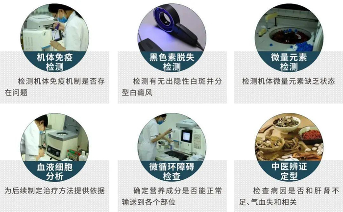 白癜风发病原因多与机体“内环境”失调有关,白斑6项检测,针对机体进行细致化、全面检验,对机体内环境进行全面排查,诊断白癜风的同时判断发病原因。