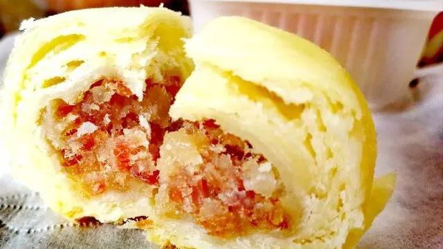 将和好发酵好的面取适量,揉成圆形放入模子中压平,将馅料平铺满面饼,然后再揉一块面团覆盖上,继续压紧压实,之后取来粉红色的纸垫上,将模子里的饼倒出,“班涛”就做好了。