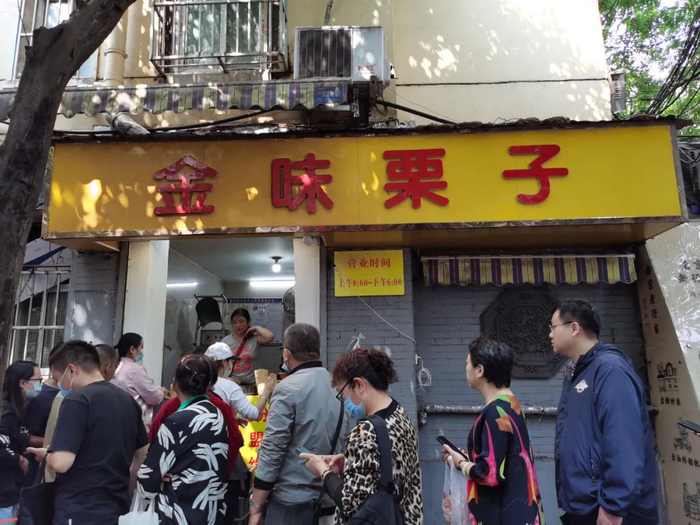 这条门前排着两条长队的金味栗子