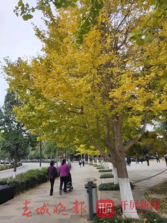 这几天,昆明马路上银杏枝头的叶子已开始从绿渐渐泛黄,估计再等一个月左右,便会是“满城尽带黄金甲”了。