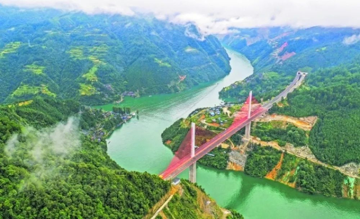 图为10月1日拍摄的贵州剑榕高速清水江特大桥(无人机照片)