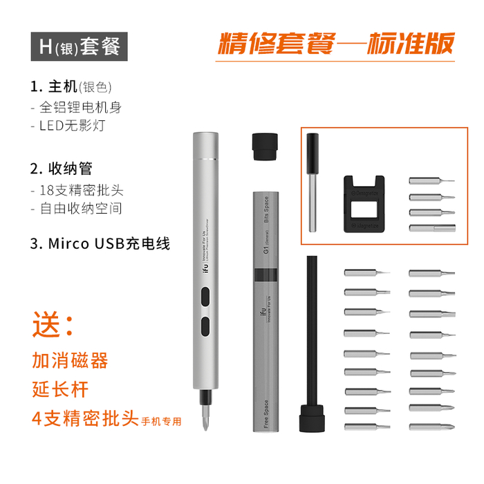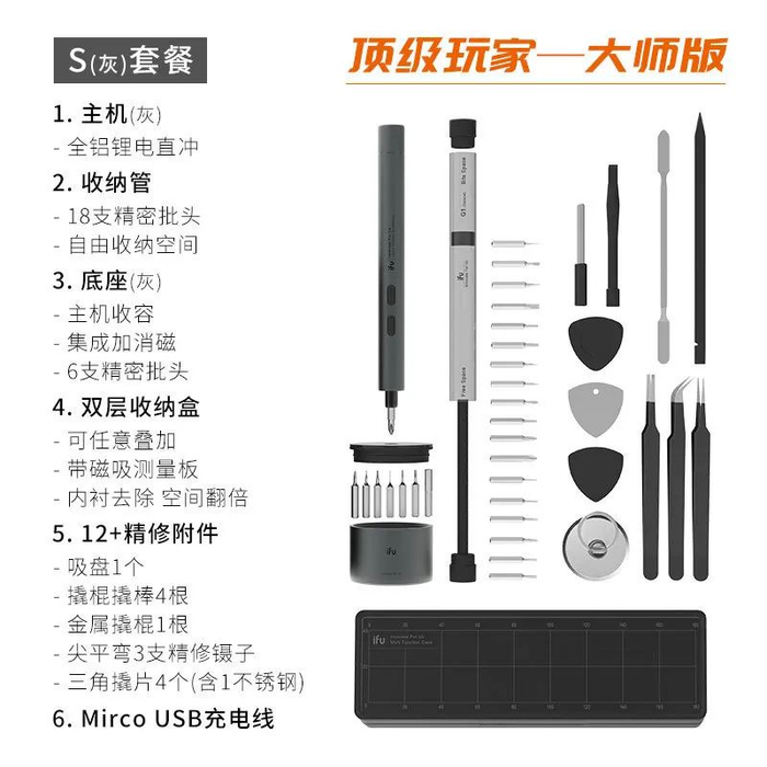 而这些琐碎的小工具,ifu电动螺丝刀套装都给你备得齐齐的!不仅配齐了,还送一个磁吸的收纳魔盒!