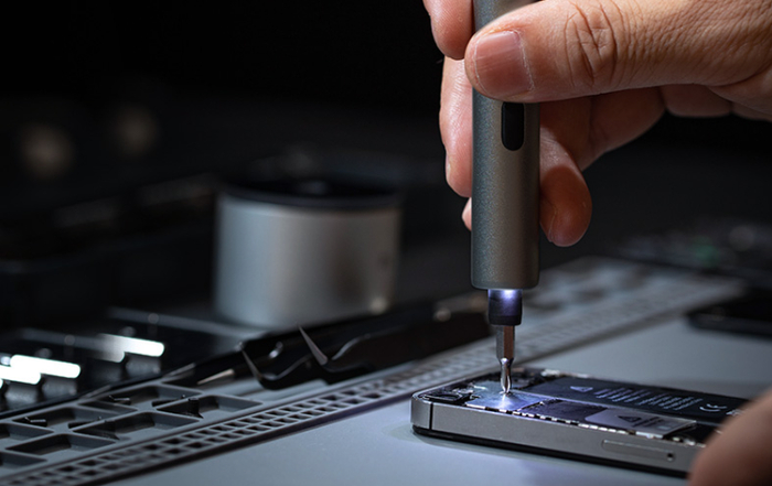 ifu电动螺丝刀,采用高电池能量密度的锂电池,充一次电,可以拆装500颗左右精密螺钉。