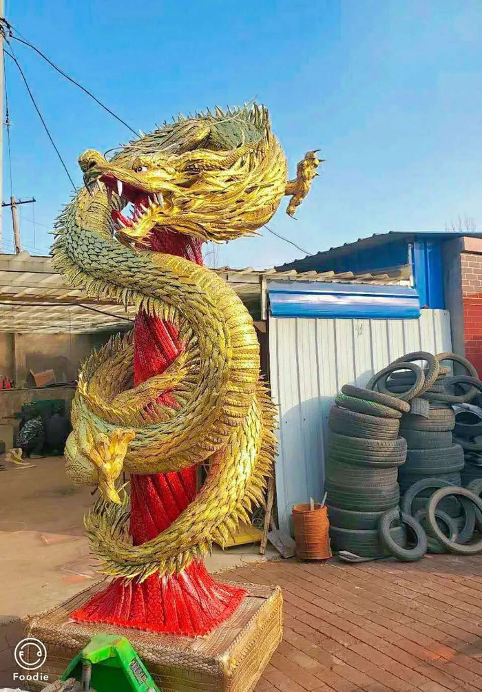 记者看到白鸥展示的一条金色的龙,白鸥介绍,这条龙耗时一个月、用1200条轮胎做成。类似于这样的作品还有不少,白鸥说,作品耗时长,但是他享受创作的过程,“做的都是自己喜欢的。”