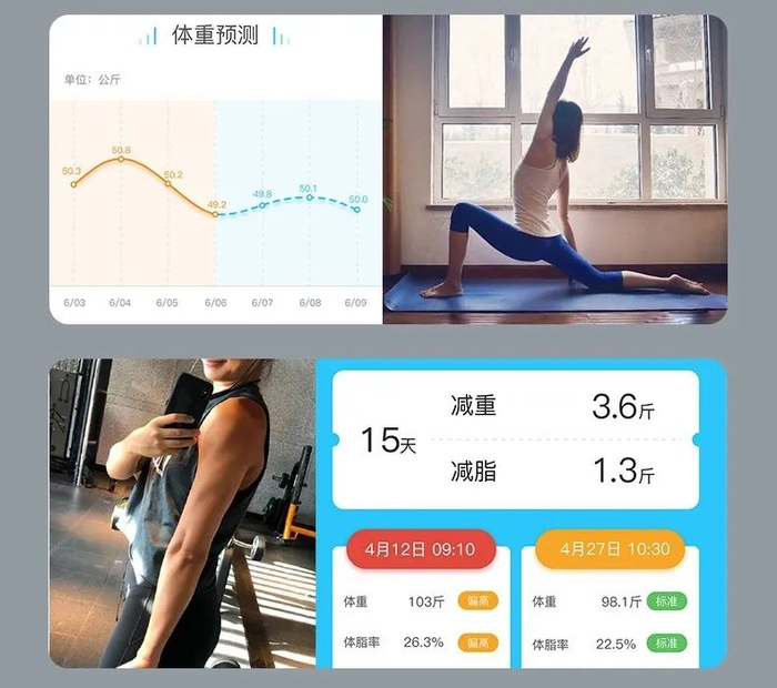 体脂含量实打实发生了变化,说明云康宝体脂秤的数据可不是随随便便根据输入的身高体重计算出来的。