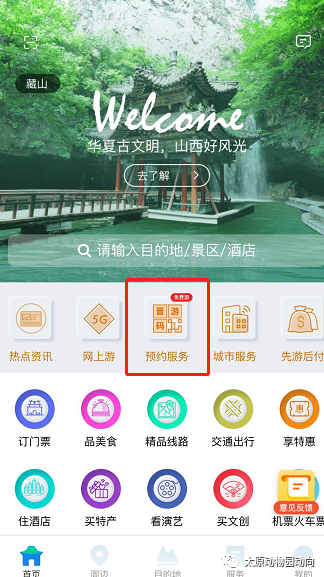 1、“游山西”APP(提前一天预约)