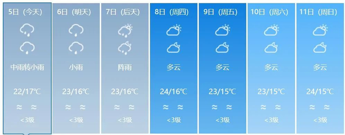未来7天里,5、6、7号三天昆明都将有降雨,其后四天为多云天气,气温总体变化不大.....