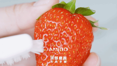 用它刷牙不仅没有刺痛感,还能避免擦伤牙龈,我们拿它做了一个小实验,用它刷过的草莓表面完好如初,牙齿易不舒服的朋友也能放心。