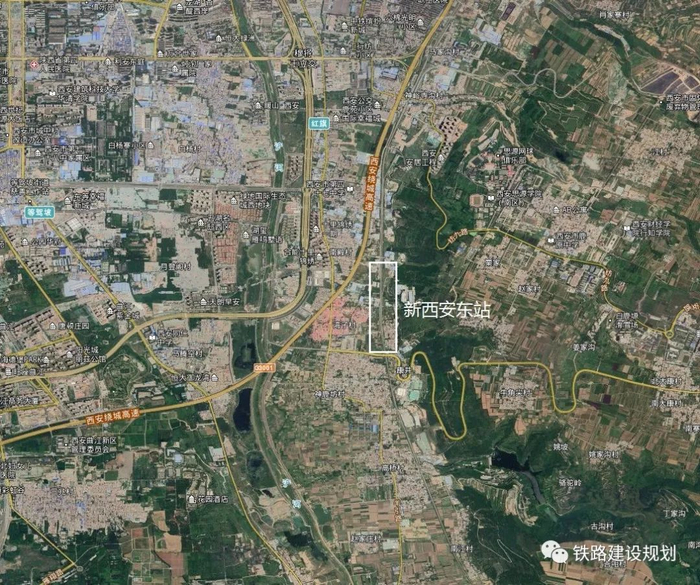 新建西安至十堰铁路项目起点从银武连接线赵西线路向南引出,向北预留延伸至西延高铁港务区站,向西北设置西南联络线,接入陇海线(动车线)连接既有西安站,银武正线上下行外包西延高铁正线向南,跨过既有西康线,方向与西延高铁上下行线并行,依次跨过沪陕高速、灞河、福银高速、既有西康一线,线路四线规模走行于白鹿塬西侧,再次跨过既有西康线,于灞桥区湾子村东侧白鹿塬坡脚设西安东站。