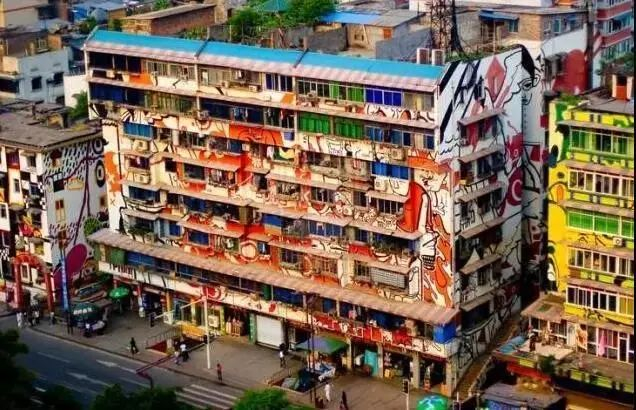 在重庆,似乎再没有哪条街能有黄桷坪那样的绚丽多彩,1.25公里的街道两旁,五颜六色的涂鸦作品遍布高楼上,俨然一个街头艺术展。
