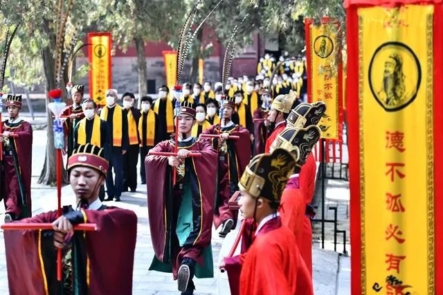9月28日,参加庚子年祭孔大典的嘉宾步入曲阜孔庙。当日,庚子年祭孔大典在孔子故里山东曲阜孔庙举行,以纪念孔子诞辰2571年。