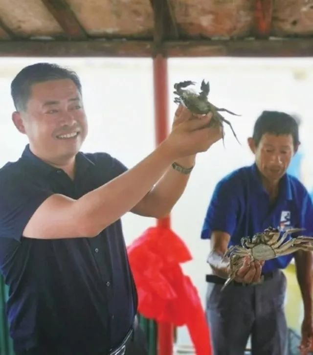东营蟹农展示今年起笼的第一笼黄河口大闸蟹。