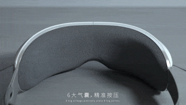 它内部有的 6 个高回弹气囊,这6个气囊围绕着眼框周围,在眼周模拟出推、按、挤等手法。中空的设计让按摩的同时不会压迫眼球。