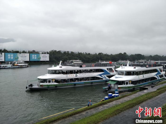 10月4日,桂林磨盘山码头准备出发的漓江游船。 蓝波 摄