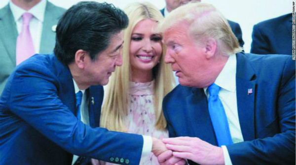 图说:伊万卡陪同父亲特朗普会见日本前首相安倍