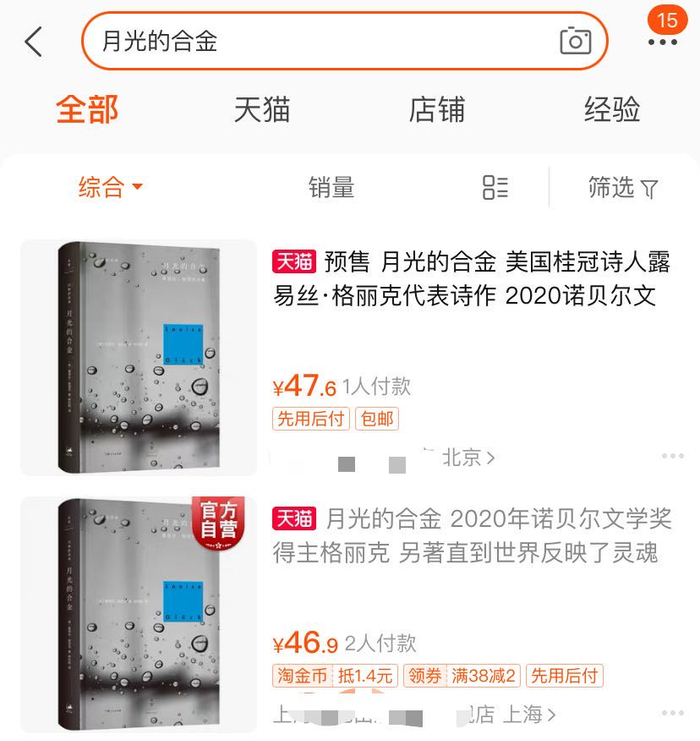 据介绍,国内出版的露易丝·格丽克作品包括《直到世界反映了灵魂最深层的需要》《月光的合金》。但中国青年报(ID:zqbcyol)浏览网上书城发现,她的书不仅销量寥寥,评论时间基本保持在一年前......