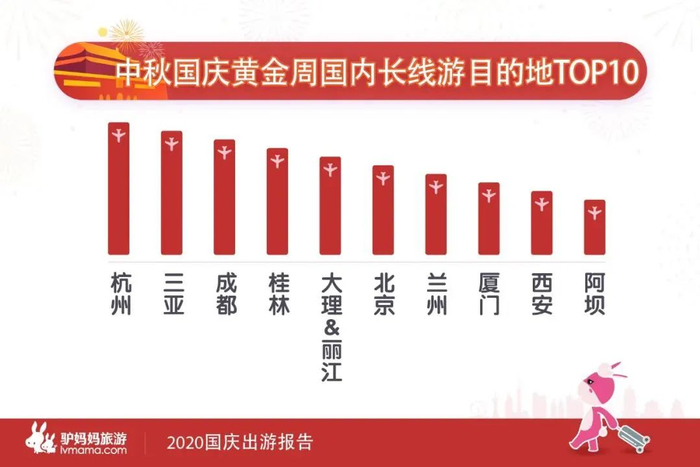 杭州、三亚、成都、桂林、大丽(大理和丽江)、北京、兰州、厦门、西安、阿坝等位居十大热门目的地。