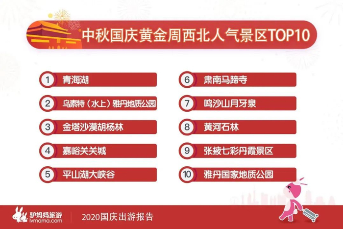“不到西北,不知中国之大。”今年国庆假期期间,西北、西南继续备受高频游客,尤其是往年出境游游客欢迎。《报告》显示,杭州、三亚、成都、桂林、大丽(大理和丽江)、北京、兰州、厦门、西安、阿坝等位居十大热门目的地。国庆期间,2——6人的精品小团游、自由行尤其受欢迎。驴妈妈平台数据显示,国庆期间,该平台长线自由行人次占比首次接近五成。