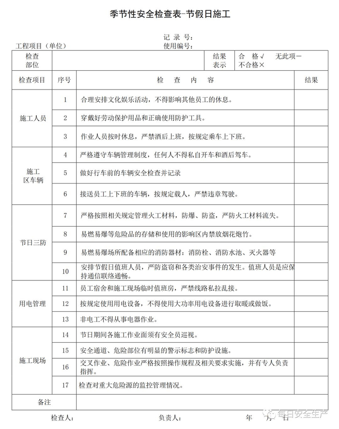 节假日前后由于员工思节度假人心唤散、精力不集中,往往是造成各种事故的根源,要利用本单位或外单位类似的事故案例,进行警示教育,提醒人们做好安全工作,重视生产安全
